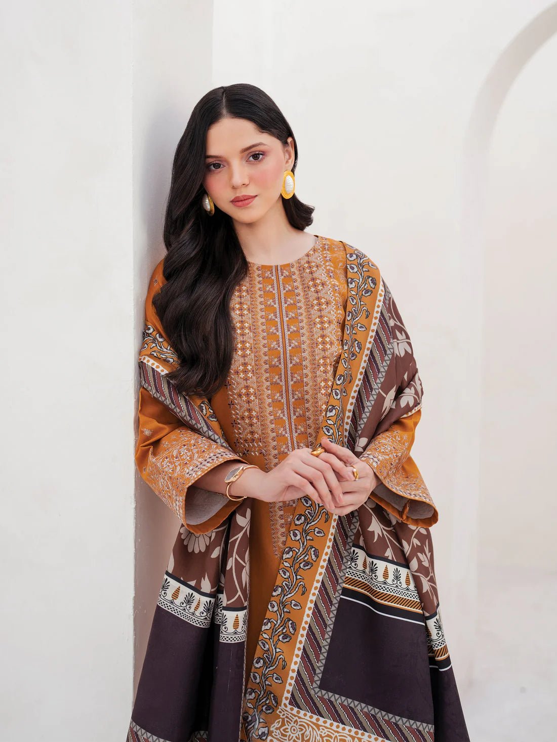 Garnet – A 3PC lawn embroidered suit featuring a beautifully detailed shirt, soft Monark print dupatta, and a matching trouser. Perfect blend of elegance and comfort for any occasion