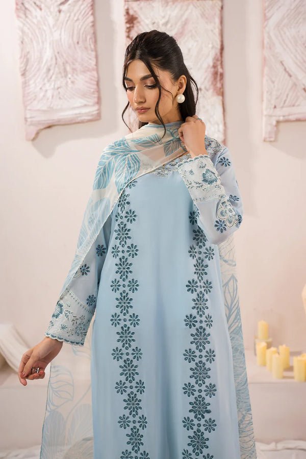 IZNIK – 3PC LAWN BORER EMBROIDERED SHIRT WITH MONARK PRINTED DUPATTA AND TROUSER-ORC-121