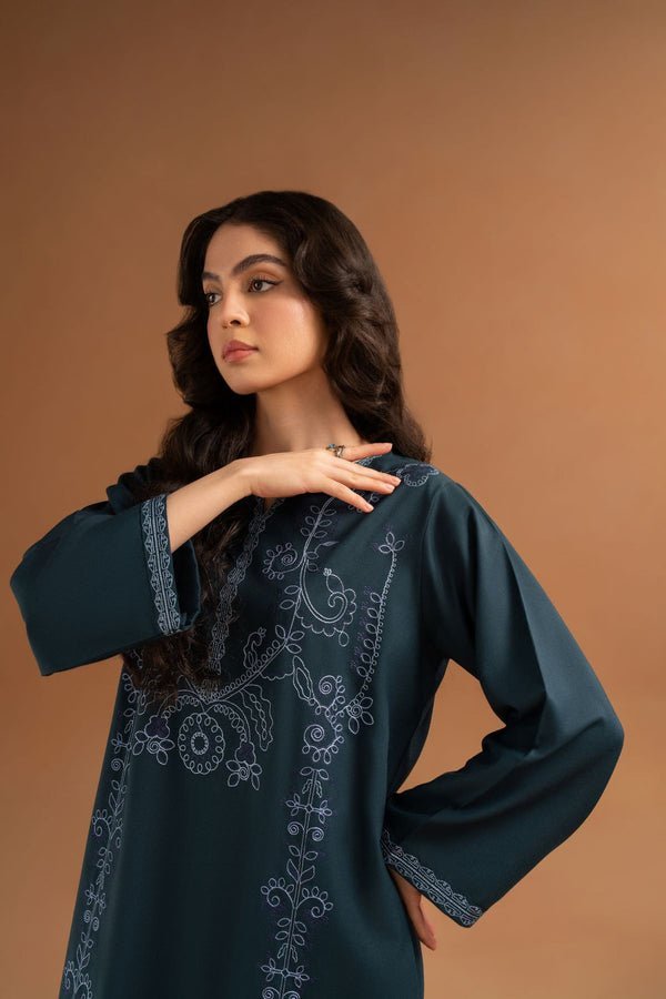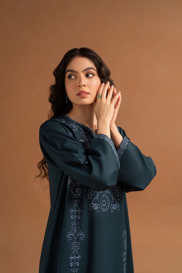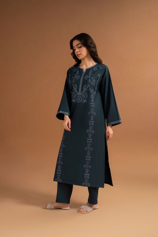 LAZULI-2PC DHANAK EMBROIDRED SHIRT WITH DHANAK TROUSER-ORC-140