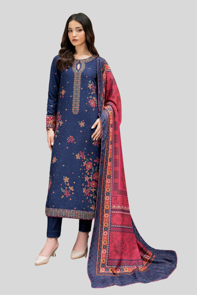 MARIA B-3PC CHIKENKAARI LAWN EMBROIDERED SHIRT WITH MONARK PRINT DUPATTA AND TROUSER-ORC-112