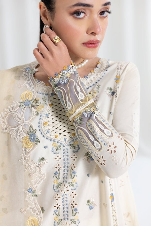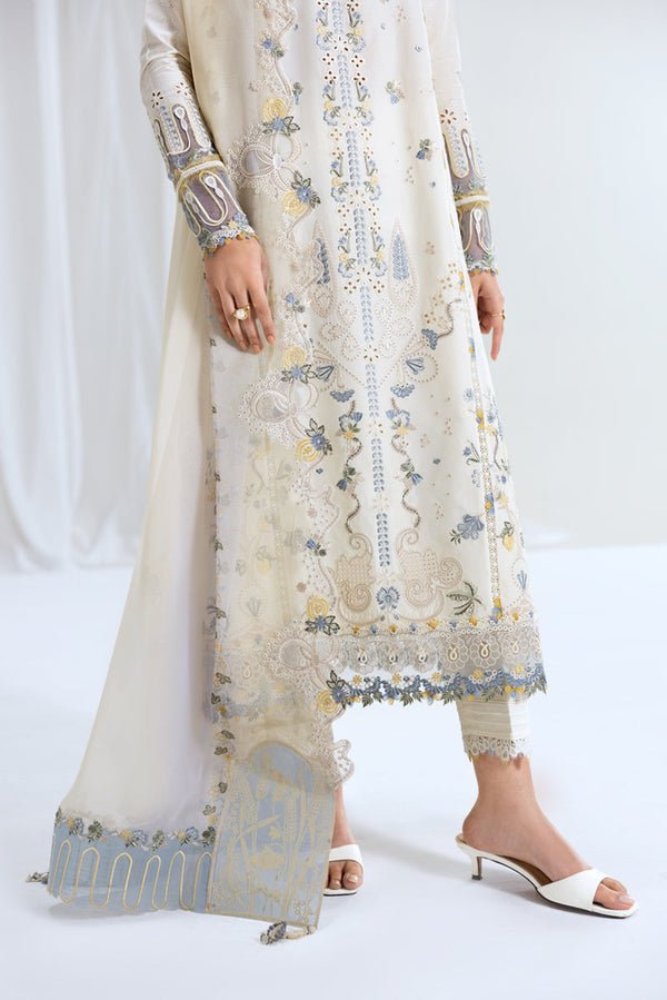 QALAMQAR – 3PC LAWN EMBROIDERED SHIRT WITH NET EMBROIDERED DUPATTA AND TROUSER -ORC-109