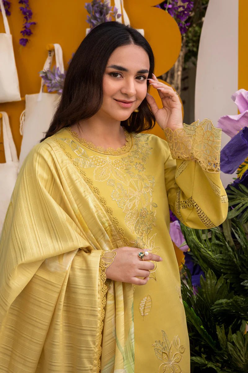 Experience timeless elegance with the Rang Rasiya 3-Piece Lawn Suit, featuring a beautifully embroidered lawn shirt, a stylish Monark print dupatta, and a comfortable trouser. Perfect for any occasion, this outfit blends traditional charm with modern flair, offering both style and comfort.