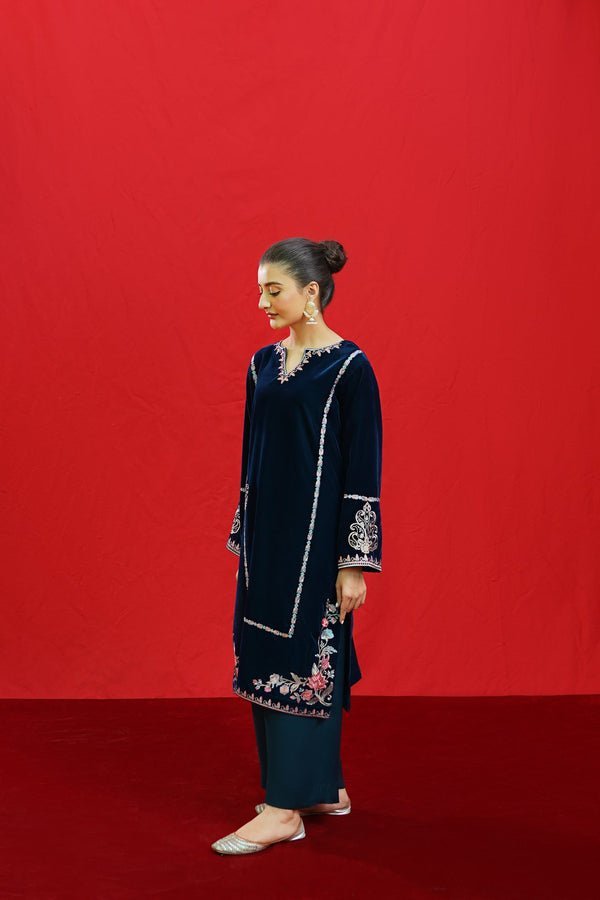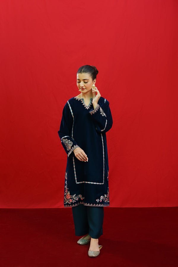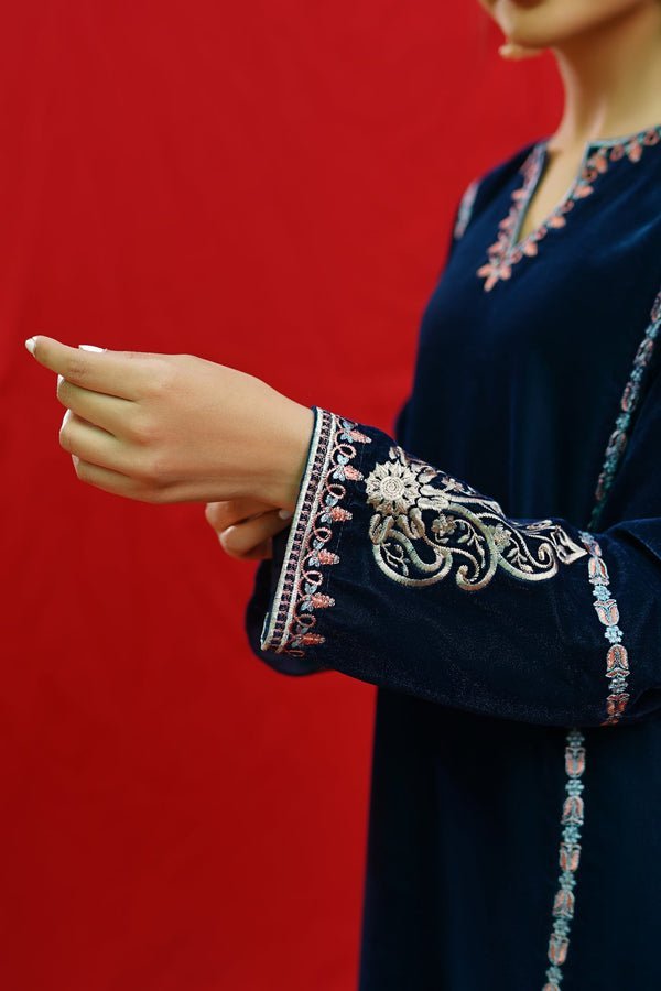 URGE -2PC Velvet Heavy Embroidered Shirt With Velvet Embroidered Sleeves-ORC-128